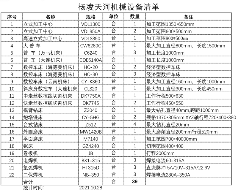 天河公司所有设备清单
