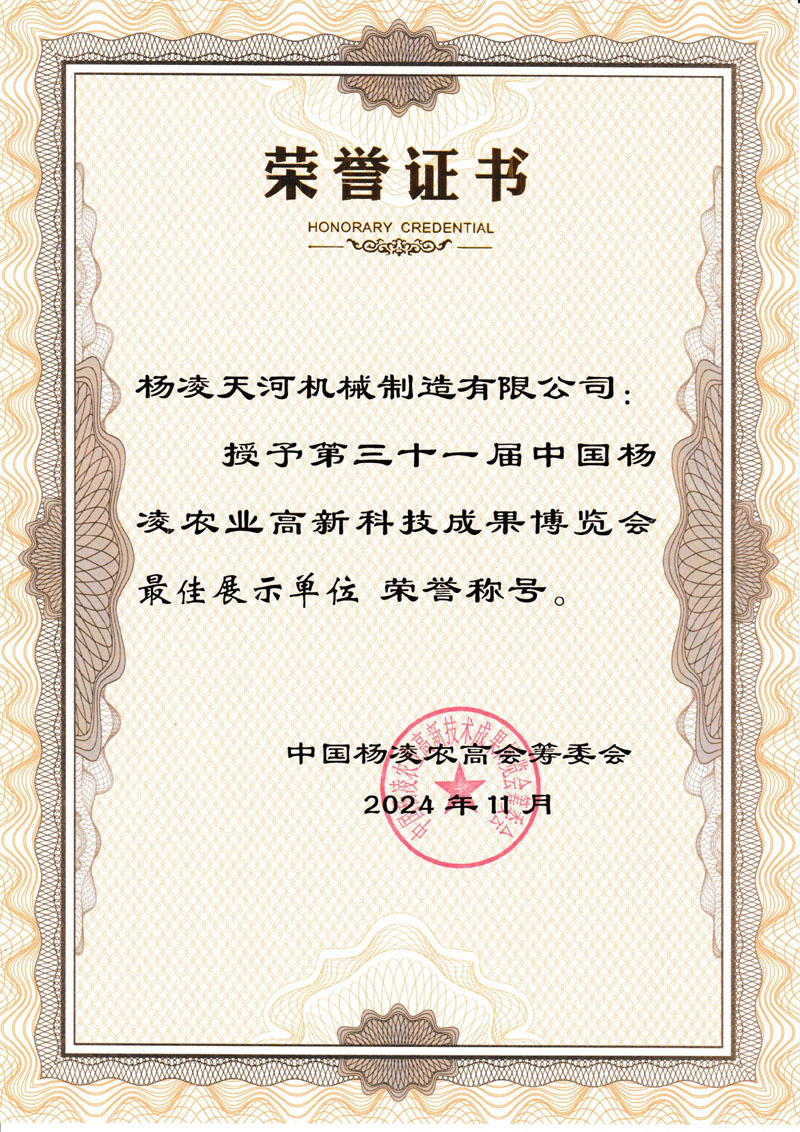 我公司荣获第三十一届中国杨凌高新科技成果博览会最佳展示单位荣誉称号
